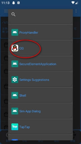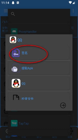 4.确定之后,继续选择要去签名的应用,如点击【qq】;