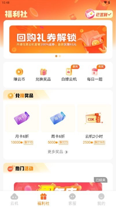 3、再接着点击下方的“福利社”,支持赚云币,兑换奖品等功能。