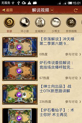 4、炉石视频:最新赛事直播、第一时间观看少帮主、JY等30位签约解说视频。