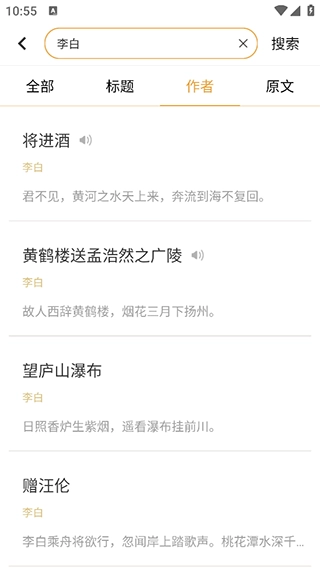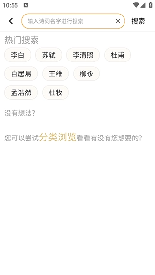 2、在上方搜索框输入想要寻找的诗词或者作者,小编以李白为例;