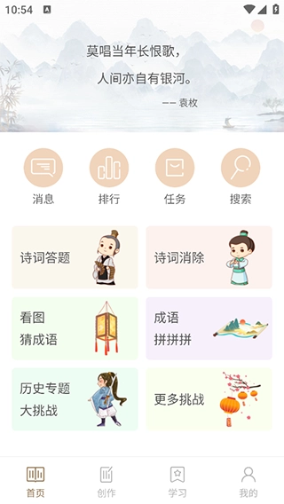 这里收集了1000多首中国古诗相关内容,题型丰富有趣,涵盖选择题、填字题、看图猜诗句、识别诗句等多种类型,是适合全国中小学生及高中生的优质学习教材。快来挑战一下,看看能否突破大脑极限吧!以答题闯关的形式,让学习古诗词不再枯燥乏味。