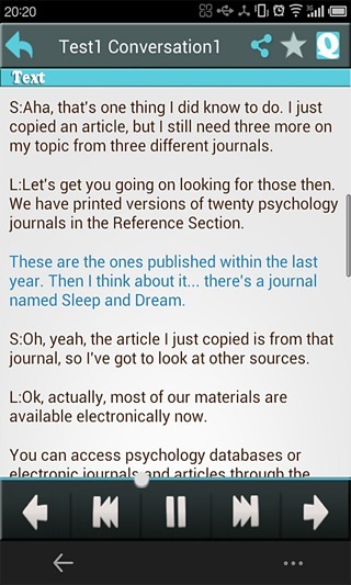 托福听力:爱语吧最新推出的Android版托福听力应用,为不同程度的英语学习者提供了三种学习模式——显示原文、同时显示原文和题目、仅显示题目,并且可以自由切换。