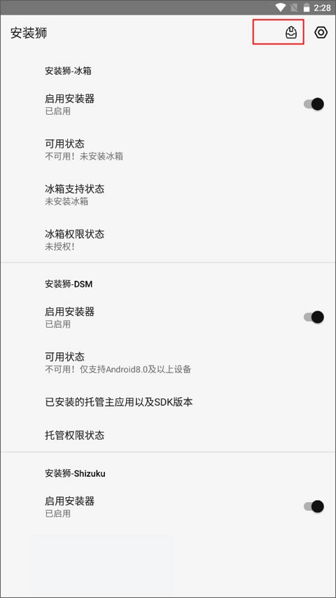(1)把Shizuku安装器配置妥当后,接下来便要开始安装软件,点击右上方的安装器图标。
