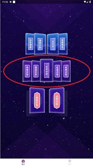 2. 进入首页,在页面中间能够看到识别功能,该功能涵盖动物识别、蔬菜识别、文字识别、红酒识别以及车辆识别。