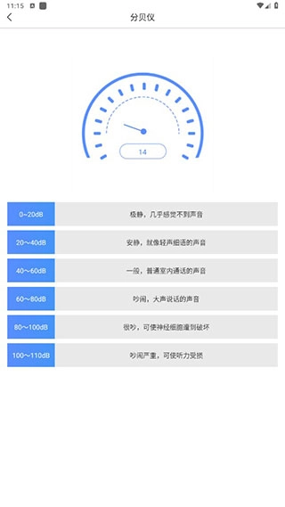 3、在首页点击分贝测量功能,便能进入分贝测量页面。在此页面,用户既可以自行发声,也能用其他物品发出声音,以此来进行分贝测量。