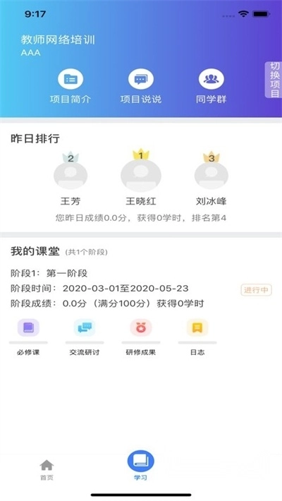 我的项目:您所参与的培训课程与项目清晰呈现。可随时回溯您的学习历程,知悉自身学习进度与成果。