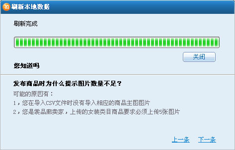 您可点击顶部工具栏的“刷新数据”来与拍拍网同步更新地区信息、商品分类、运费模板、自定义分类信息等数据,此操作与您登录拍拍助理4.1整合版时系统自动同步数据的操作一样
