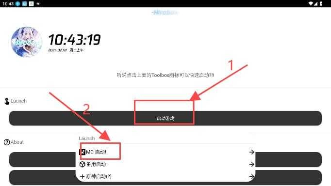 2. 在主界面中寻找到“启动MC”按钮,然后点击该按钮,具体位置如图所示。