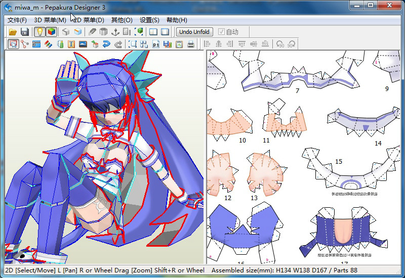 1、使用纸艺大师编辑器Pepakura Designer的编辑功能来清除折线