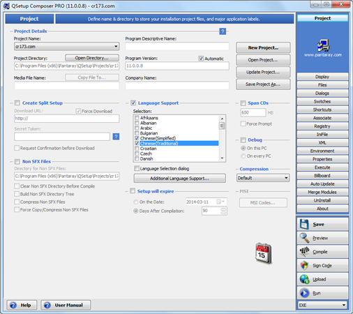 Pantaray QSetup Installation Suite Pro是一款简便易用的安装程序制作工具,它提供脚本编辑方式及众多应有尽有的安装选项,能够让你在很短的时间内就能够创建性能稳定而又可靠的安装程序,方便在网上下载、刻录到光盘中或者放到文件服务器上。