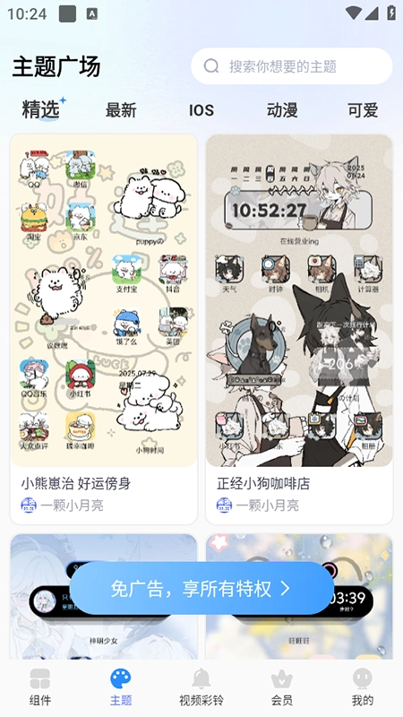 主题小组件美化,这是一款专注于手机主题美化的软件。在这款软件里,为用户准备了丰富多样的内容,像众多精美的桌面小组件、与之配套的主题图标、动态和静态的微信/QQ聊天皮肤,还有海量高清动态壁纸,任用户随心挑选。通过个性化的设置,用户的手机桌面将告别单调,焕发出独特魅力。而且该软件操作十分简便,能助力用户轻松打造专属于自己的超个性桌面小组件。