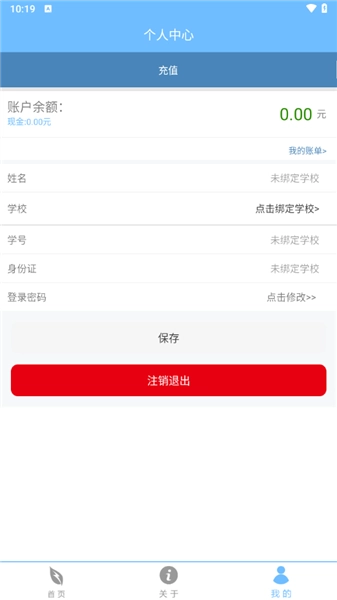 3、进入个人中心界面后,便能执行校园卡绑定操作。