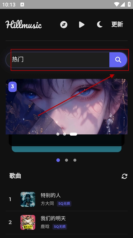 1、在本站打开软件,找到搜索框并点击,然后输入你想听的歌曲名或者歌手名。