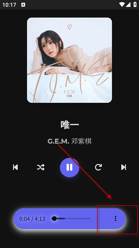 3、在歌曲播放界面中,点击播放器页面下方的三点图标,选择“”选项。
