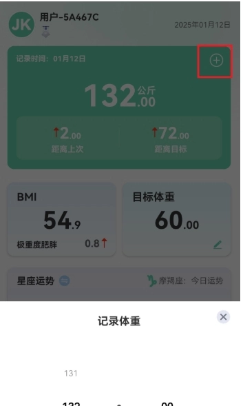 2、你还能直接在首页点击右上角的“+”号,对体重记录进行更改。
