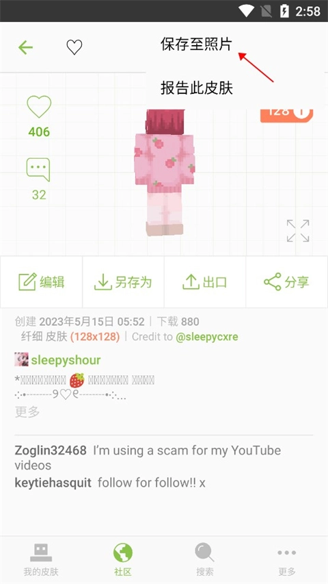 我的世界皮肤编辑器怎么导出皮肤