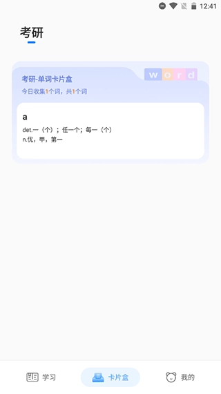 3、返回首页,经由底部菜单栏进入卡片盒板块,即可看见添加的单词。