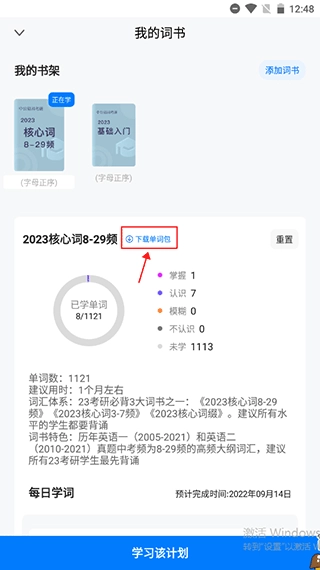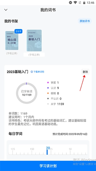 1、同样是在调整计划-我的词书页面。