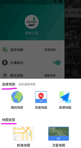 3、在此处挑选您心仪的地图模式与地图类型,选择完毕后点击返回,就能看到设置完成后的效果。