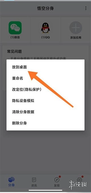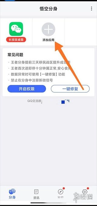 1. 打开悟空分身应用,于首页界面挑选【添加分身】这一功能选项。