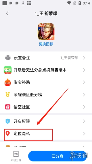 4、进入应用设置界面,选择【定位隐私】功能模块。