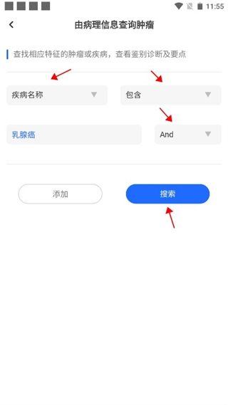 1. 打开软件,进入首页,点击切换至“查询”功能模块,这里有多种查询方式,选择第一种“由病理信息查询肿瘤”。