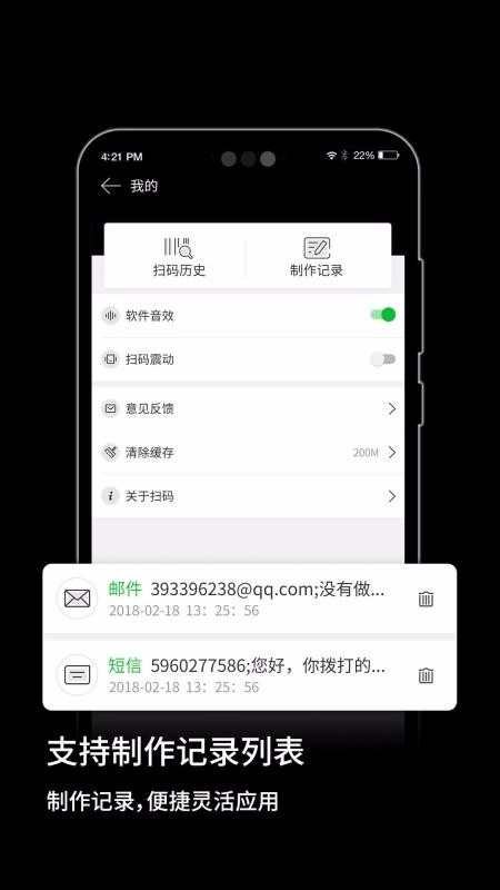 扫码历史里收录了各类扫码相关的历史信息,只需选择即可使用。