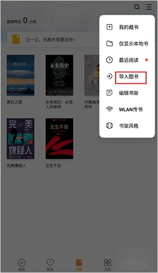 3、于弹出的功能菜单里,挑选“导入图书”这一功能选项。