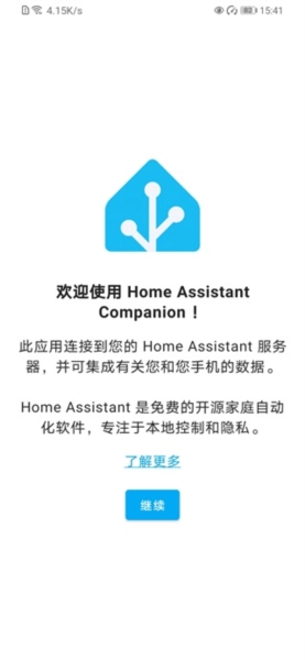 2、首次打开应用程序时,系统会引导您完成连接至Home Assistant实例的流程,请依步骤操作。