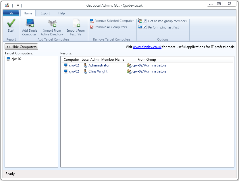 获取本地管理员GUI(Get Local Admins GUI)是一款能够在服务器或者工作站上查看谁有管理员权限的工具。只要输入你想扫描的电脑的名称,程序就会告诉你谁是本地管理员。
