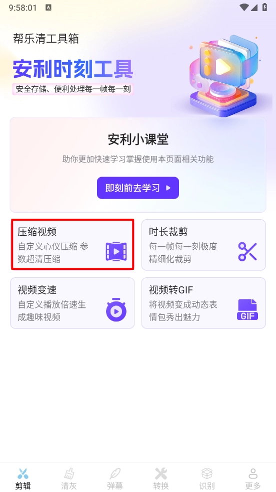 帮乐清工具箱,一款集多种实用功能于一身的万能小工具,它拥有 20 + 种日常必备功能,像手机清灰、视频剪辑、弹幕制作、文件解压等等。所有功能全部免费,一键打开即可使用,无需安装,界面清爽简洁,尤其适合手机内存告急的朋友。它能让用户更方便地清除手机灰尘,进而使手机零部件保持更洁净的状态。