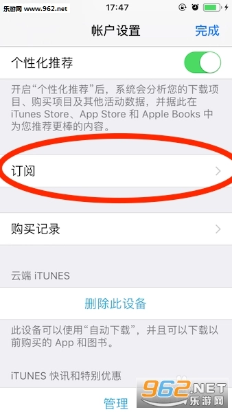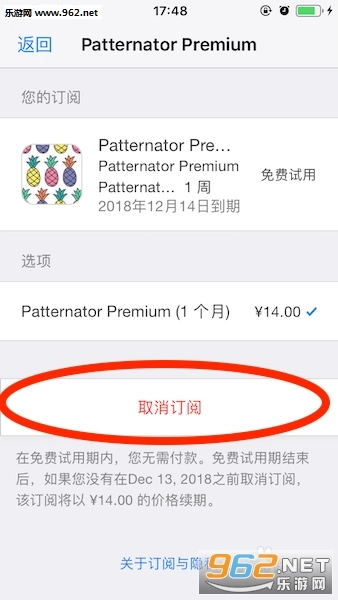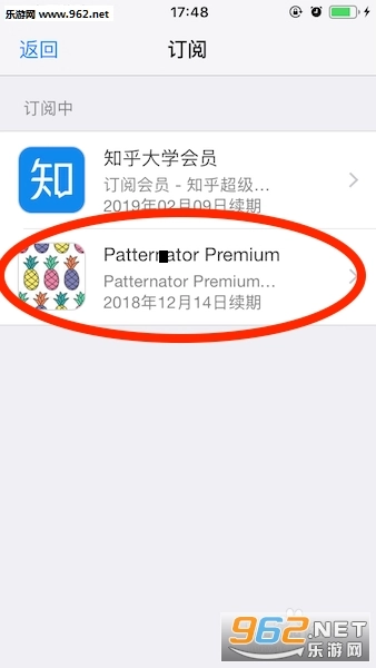 接下来便进入账户设置页面。向下滑动页面,点击“订阅”选项,就能看到你设置自动续费的项目。点击“patternator”,接着点击“取消订阅”即可。