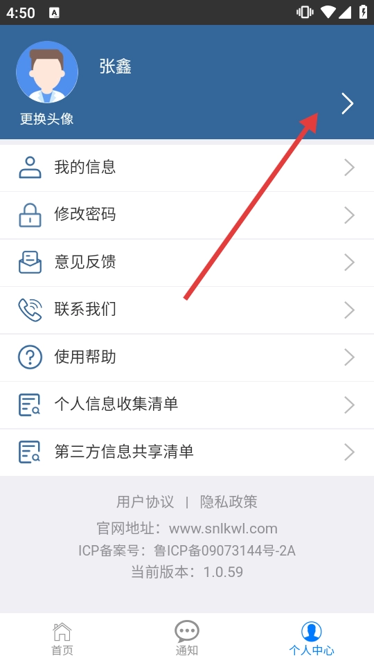 2、在个人中心页,点账号区域,进入个人信息页。