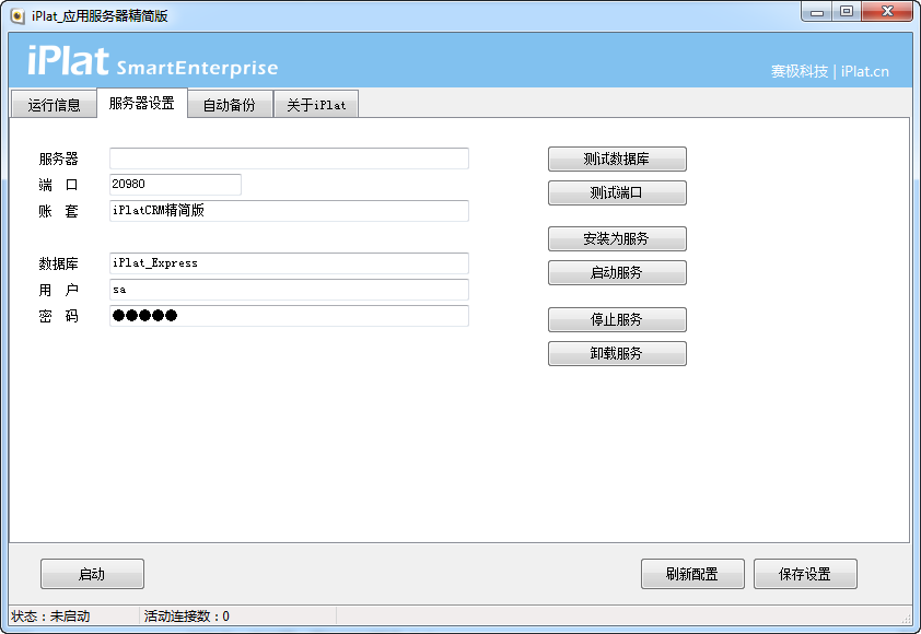 3、 启动服务程序:iPlatServiceExpress.exe,并选择“服务器设置”