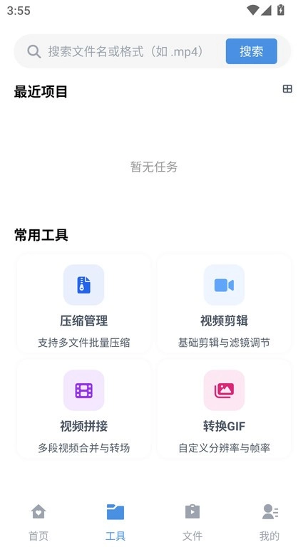 视频处理工具具备多种实用功能,涵盖“视频剪辑”、“视频拼接”、“转换GIF”以及“压缩管理”,能够充分满足创作方面以及格式转换的相关需求。