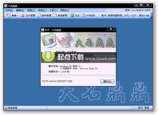 大名鼎鼎V8版 使用了SnkNET的第六代名片管理引擎,整合了“名片”、“记事”、“信息”、“邮件”、“日记”、“短信”、“日程”管理等众多功能于一体
