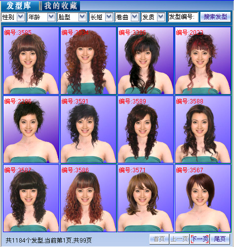 第二步:选发: 根据您的头发实际情况选择您喜欢的发型 ,不录入条件可检索出全部发型图片。