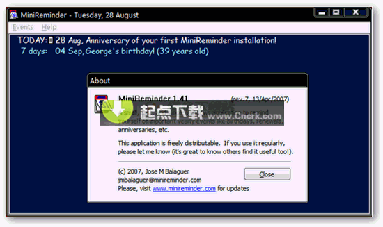 MiniReminder 这是一个小,快,和简单的 Windows 应用程序为了提醒你自己象生日,周年纪念和更新那样的重要的事件