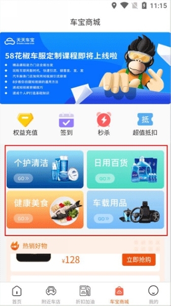 4、打开车宝商城,可以购买日用百货和软件联名产品;