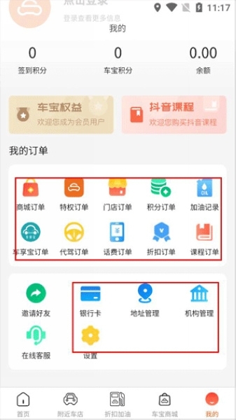 5、在我的页面中,您可以查看商城订单、加油记录、话费订单、代驾订单等信息,并进行账户信息管理。