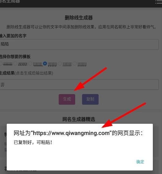 3、第一步,输入你想添加的名字,接着挑选心仪的模板,点击后就能生成结果。
