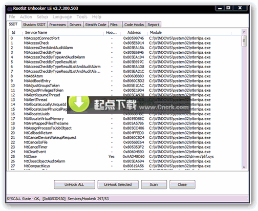 SSDT挂钩检测,包含SDT钩子卸载(unhooking)