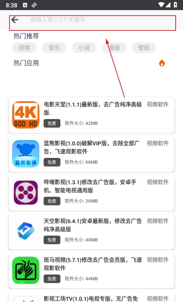 2、在主界面中,能够看到各类资源的分类以及推荐内容,同时也能够通过搜索框输入关键词,来搜索自己所需的资源。