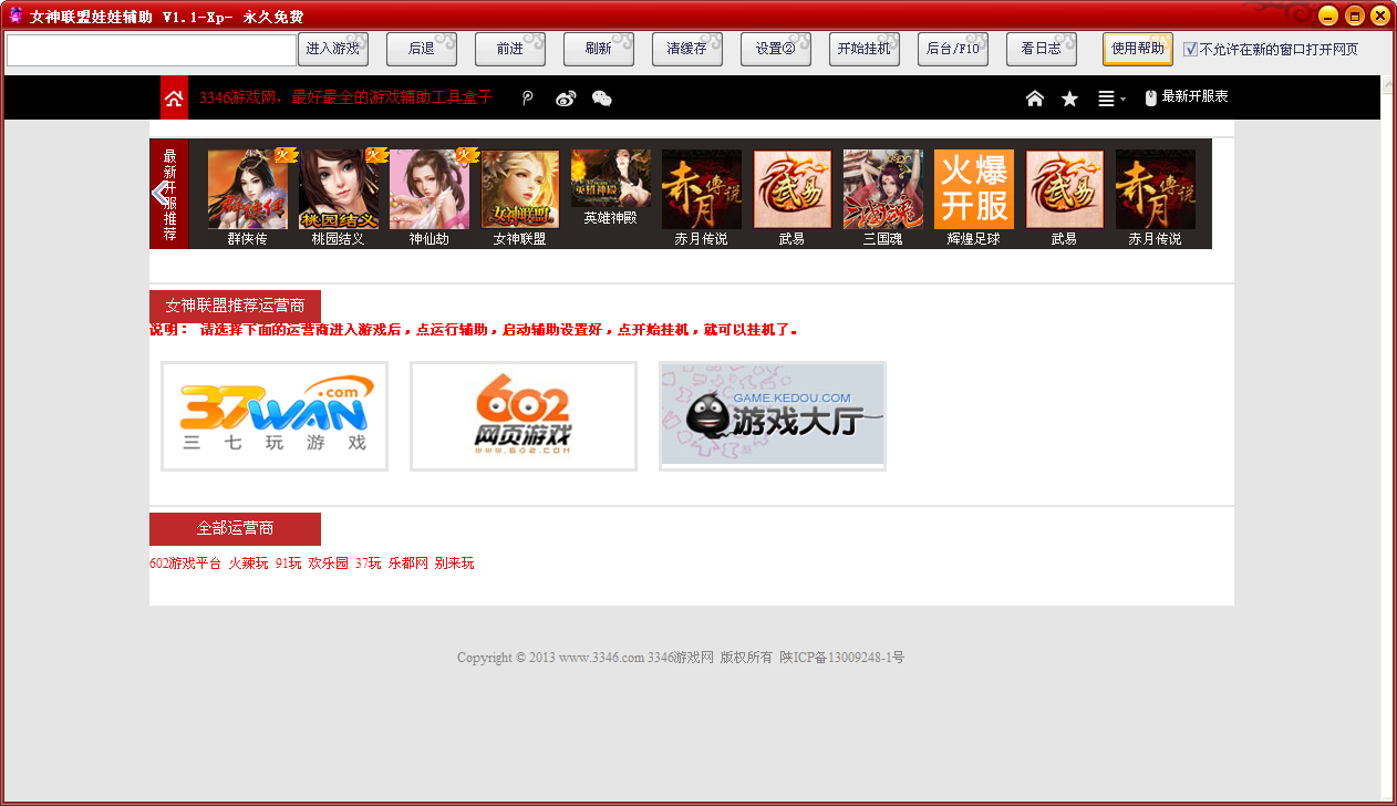 女神联盟娃娃辅助基于265G游戏浏览器运行,使用前请先安装好265G游戏浏览器