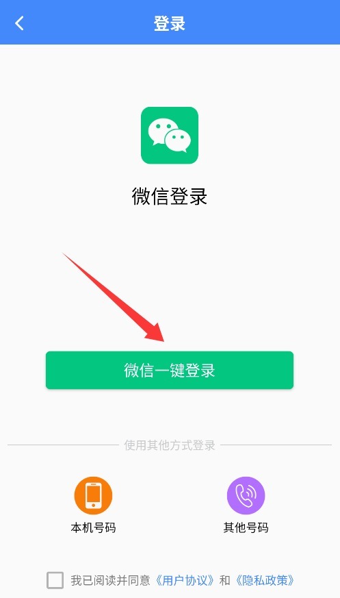 2、打开我的,点击微信一键登录,也可其他登录方式