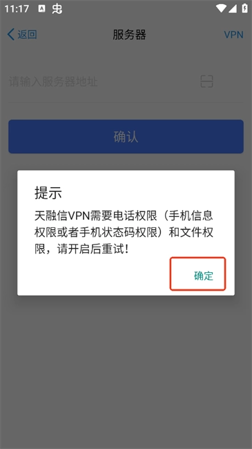 获取权限后回到服务器,输入相应的服务器地址并点击确认,就能完成登录操作。