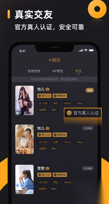 所有用户都要完成真人认证与资料审核,以此为您打造安全的交友环境。