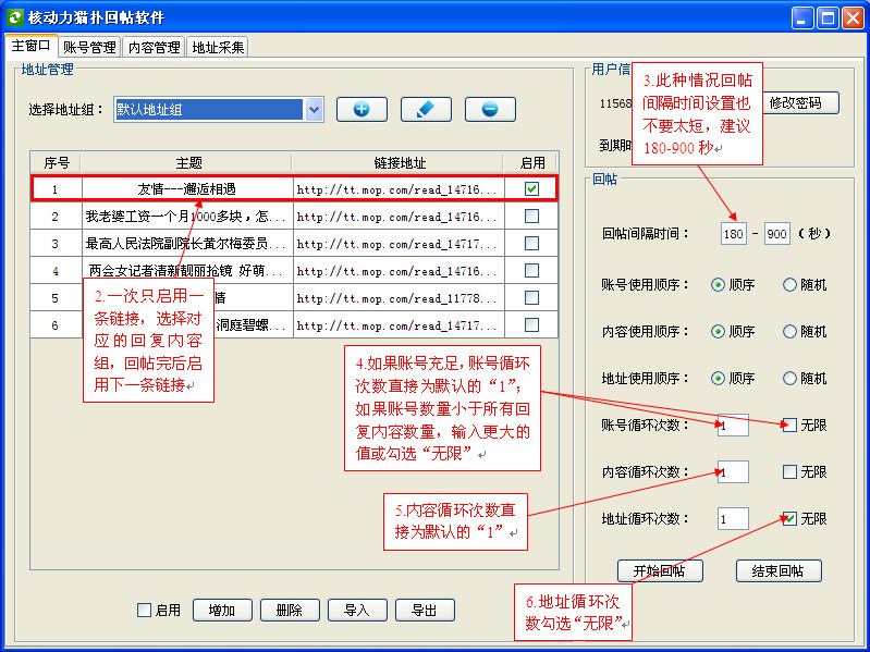 4.批量采集猫扑内帖子地址,对采集到地址进行批量回复;