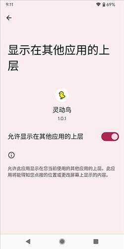 1. 打开主界面,依据提示给予灵动鸟悬浮窗权限,同时准许它在其他应用上方显示。