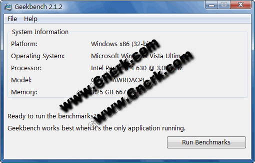 GeekBench V2.1.6 英文绿色特别版 Geekbench是一个兼容多平台的综合性测试工具,可以支持苹果、视窗、Solaris和Linux等系统,是苹果平台上最常用的测试程序,主要可以考察CPU和内存系统的运算能力